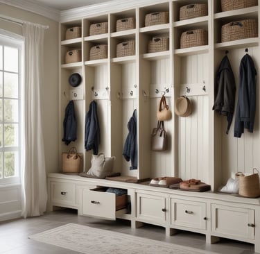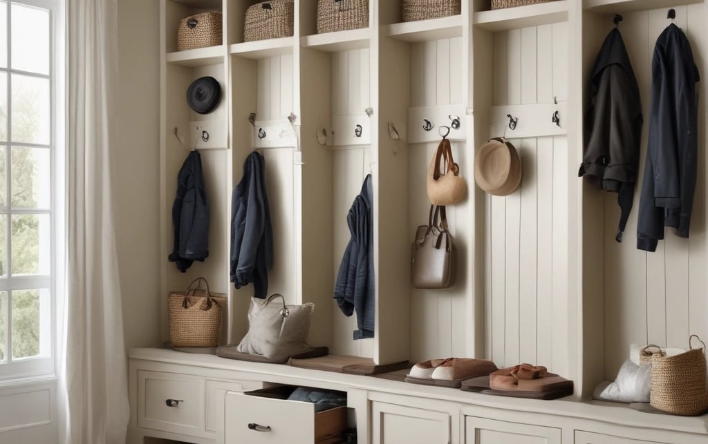 Adding wall hooks, labeled hooks, or bag hangers keeps backpacks, jackets, and purses off the floor and out of the way. This is especially useful for busy households with multiple grab-and-go items.