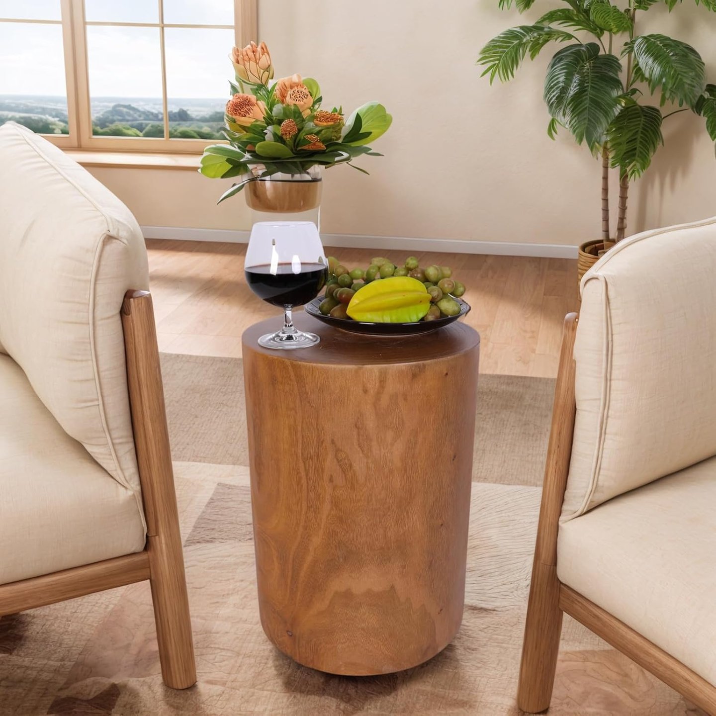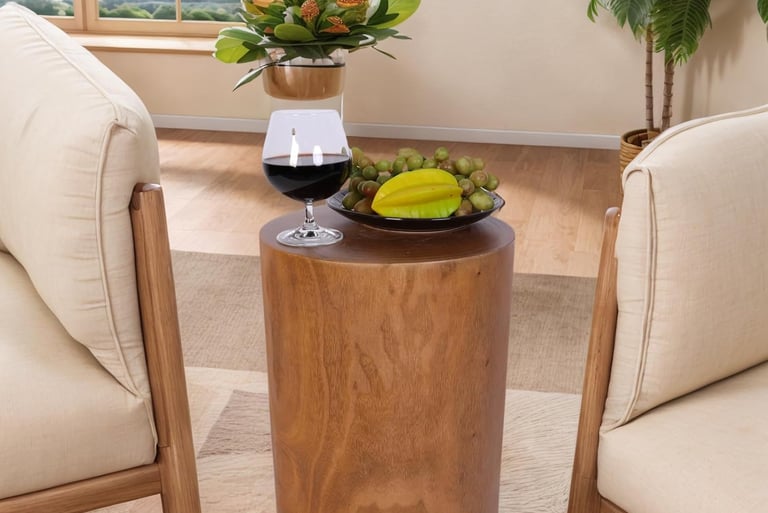 Solid wood tree stump side table