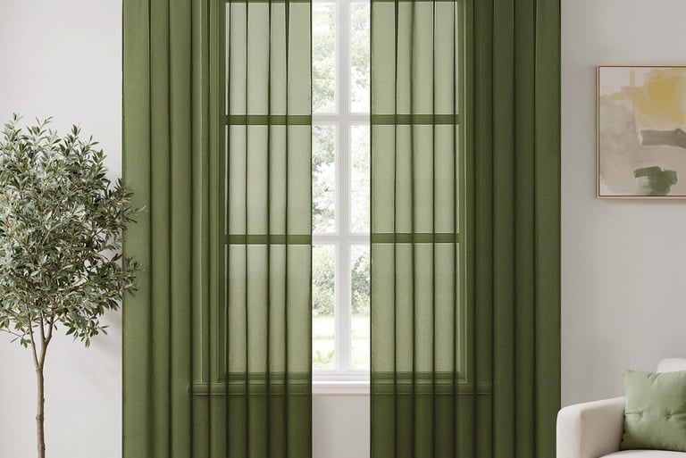 Olive green sheer curtain panels
