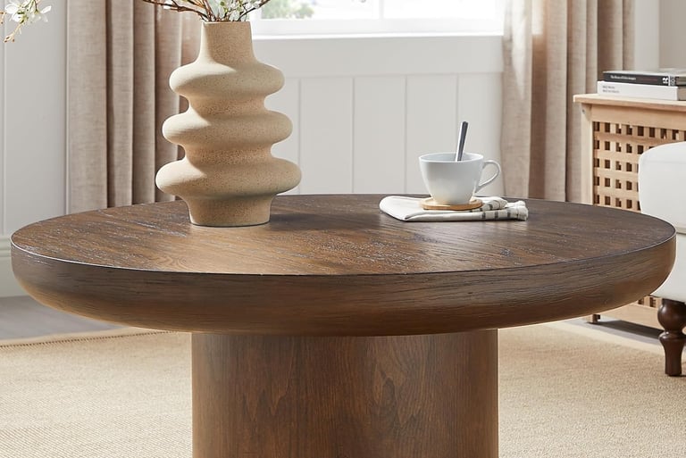 Round solid wood pedestal coffee table