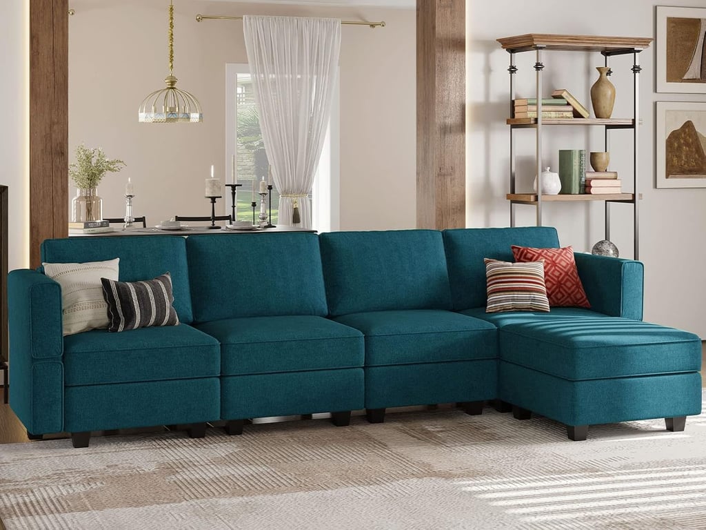 Teal modular L-shaped sectional sofa