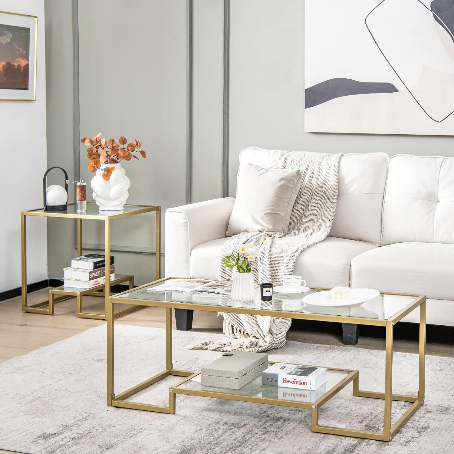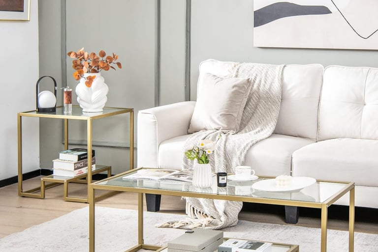 Gold glass rectangular coffee table