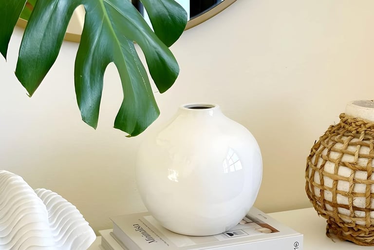 Large round white ceramic vase