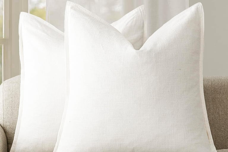 Cream white linen throw pillow covers set of 2