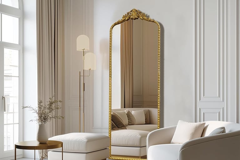 Vintage gold baroque leaning floor mirror