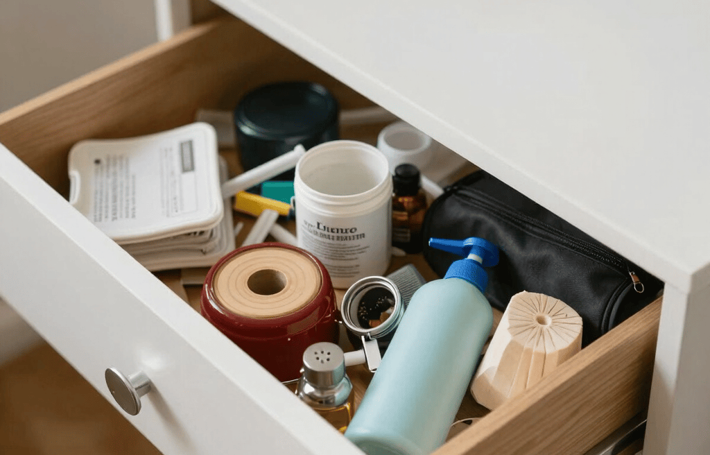 The solution is a drawer organizer or a collection of small containers that divide the drawer into distinct zones. You do not need anything expensive or custom. Small boxes, trays, or even repurposed containers work perfectly well. The goal is simply that each category of item has its own defined space so things do not mingle.